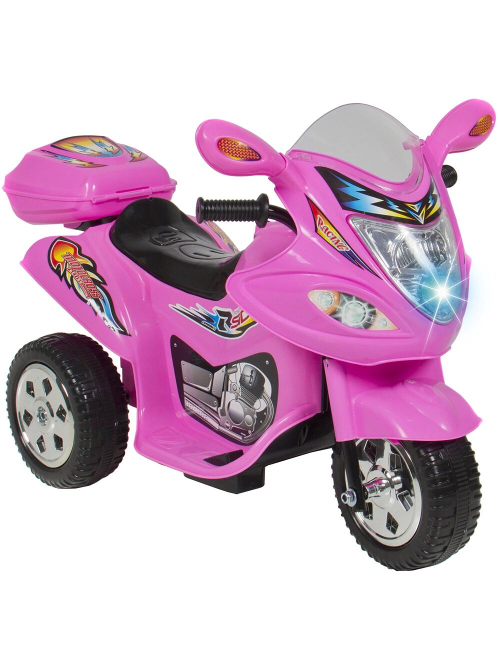 | Description | Slitesterk plast Vekt 5 kg 6V batteri 3 hjul 2 bak ett foran Fargerike dekaler Lyse foran Innebygd musikk med ulike melodier og knapp for tute. Oppladbart batteri og lader PÅ / AV-bryter Kjører forover og bakover Fotpedal kontroll Oppbevaringsrom bak for lagringsplass! Anbefalt alder 2-3 år Leveres i hvit eller rosa |