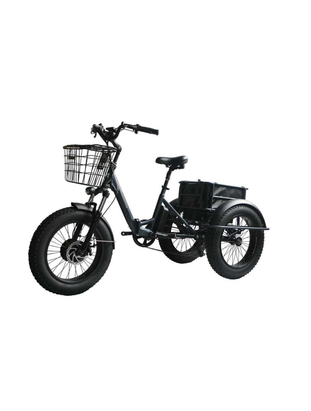Elektrisk sykkel med 3 ekstra brede og stødige hjul for voksne. Sykkelen kommer med 500W motor, litium batteri og rekkevidde på hele 50 km pr lading. (Rekkevidden beror på vekt på fører samt underlag og stigning.) Med i pakken følger kurv som festes til styret samt kraftig solid bagasjekurv inkl polstret oppbevaringsboks bak på sykkelen. Denne elektrisk trehjulssykkelen er meget stødig og har godt med bagasjeplass tatt i betraktning at det er en elsykkel. Elsykkel med 3 hjul er praktisk om en trenger økt balanse,ekstra hjelp i bakker og med fremdriften. Elektrisk sykkel med 3 hjul er utstyrt med skivebremser foran og skivebremser bak for ekstra god bremsekraft. Med sine brede dekk og gode gripeevne kan denne elsykkelen benyttes året rundt.