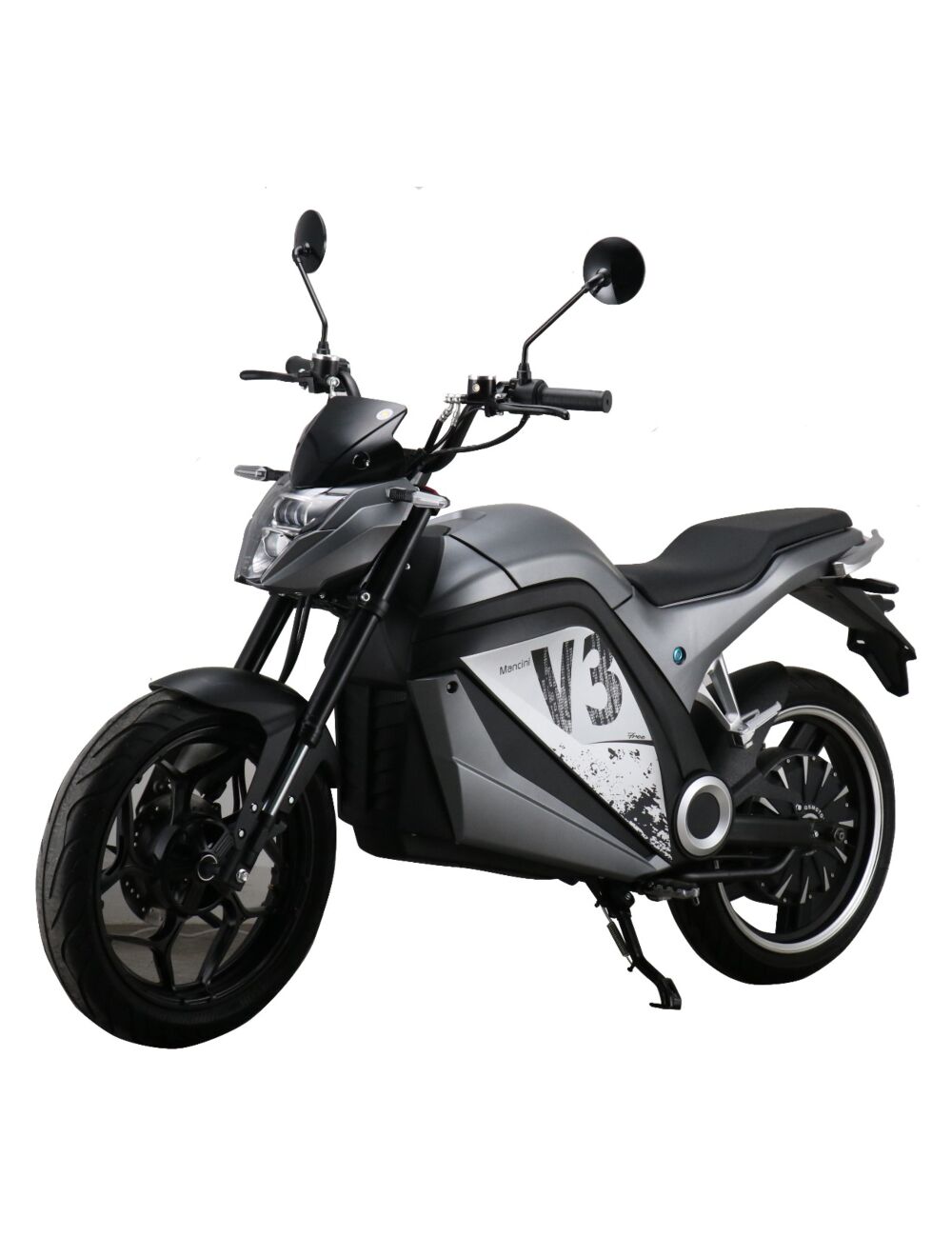 Mancini V3 Grå/sort farge Motor børsteløs 3000W Litium Ion batteri 72V 30AH Ladetid 6-8 timer Maks hastighet 45km/h Rekkevidde 1 stk batteri 60 km (45km/h) Lader inkludert Hjulbase (mm) 1370mm Setehøyde(mm) 790mm Bakkeklaring(mm) 180mm Max vekt (kg) 181kg Dekk dimensjon (Fr.) 110/70-17inch Dekk dimensjon(Rr.) 117/70-17inch Forbremse Skive Bakbremse Skive Dimensjon (mm) (L*W*H) 1955*735*1090mm Bruttovekt 110kg