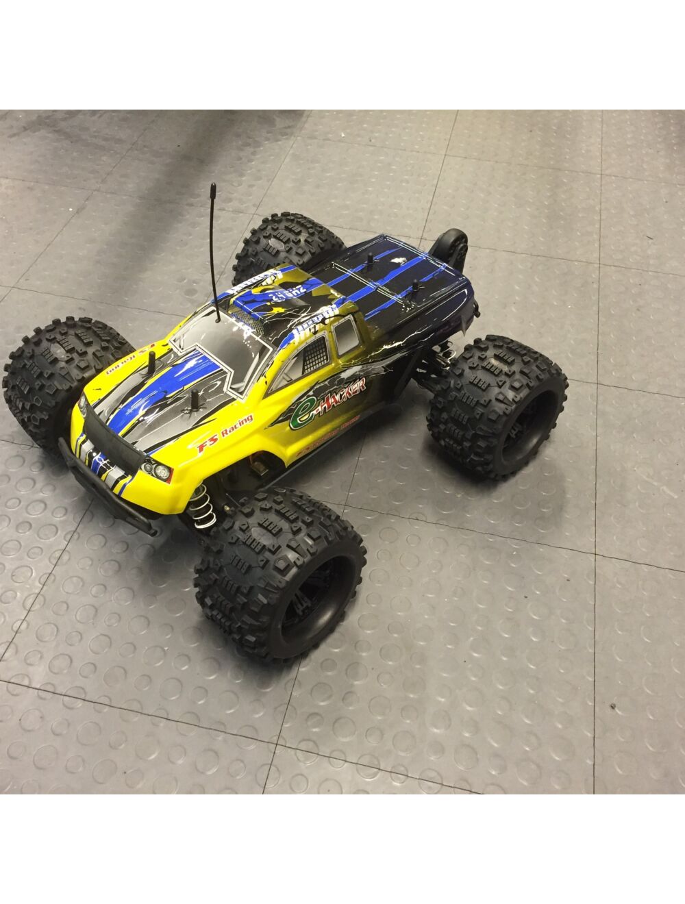 E-HACKER 4x4 BØRSTELØS MONSTER-TRUCK 1:8 2,4 GHZ 80KM/H E-Hacker er en meget robust rc bil med svært gode kjøreegenskaper. Bilen leveres med 16MM Big-Bore støtdemper sett fast 4wd. Denne nye og store Børsteløs 4WD monstertrucken er et artig kjøretøy Batteri og lader medfølger ikke. Håndteringen er utmerket. Denne børsteløse bilen kan klare maks hastighet og ytelse selv i meget ulendt terreng. Lengde: 560mm Bredde: 440mm Høyde: 260mm Akselavstand: 360mm Dekk Diameter: 150mm Vekt: 4280g Gear Ratio: 14,88: 1 Chassi: 3mm Al 6061 T6 Servo: 10kg mental utstyr Børsteløs motor: 3674kv2370 Børsteløs ESC: 80A