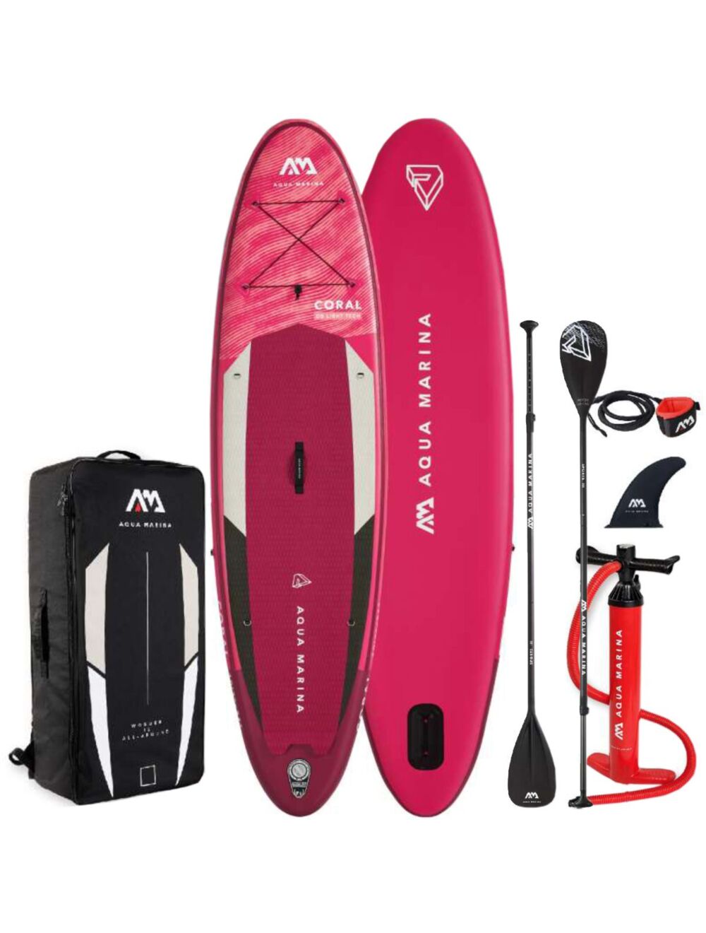 Coral Sup er det nyeste tilskuddet til Aqua Marina All-Around advanced series , brettet er egnet for brukere opp til ca 75kg. Brettets egenvekt er kun 8,6 kg og tar liten plass i den nye og oppgraderte ryggsekken til Aqua Marina. Med 2-lags PVC konstruksjon vil dette brettet tåle mer enn rimeligere alternativer. Coral er et padlebrett designet med og for damer Coral 10’2” er et Allround oppblåsbart SUP-brett som passer padlere med ulike ferdighetsnivå. Det kule og unike designet på Coral vil definitivt skille seg ut i skjærgården. Corals 10’2” feminine uttrykk retter seg mer mot de kvinnelige padlere. Coral vil oppleves som et stabilt, godt brett og glir raskt igjennom vannet. Brettet er enkelt og lett å håndtere, og pumpes opp på kun få minutter.
