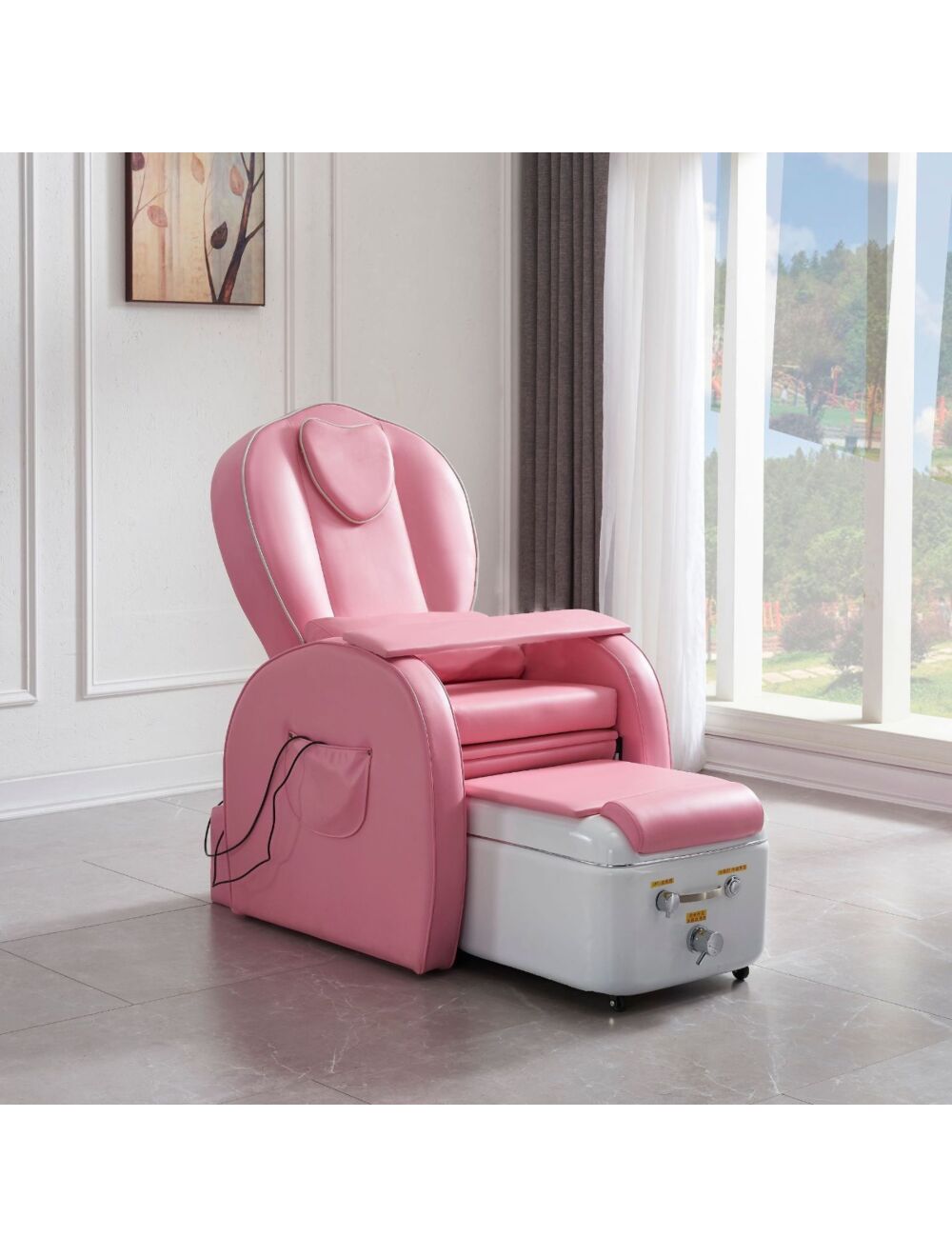 Stolen er multifunksjonell pedikyr massasjestol med fotspa. Massasjestolen kan brukes til manikyr,fotbad og som pedikyrstol. Produktet leveres i fargene hvit eller rosa.