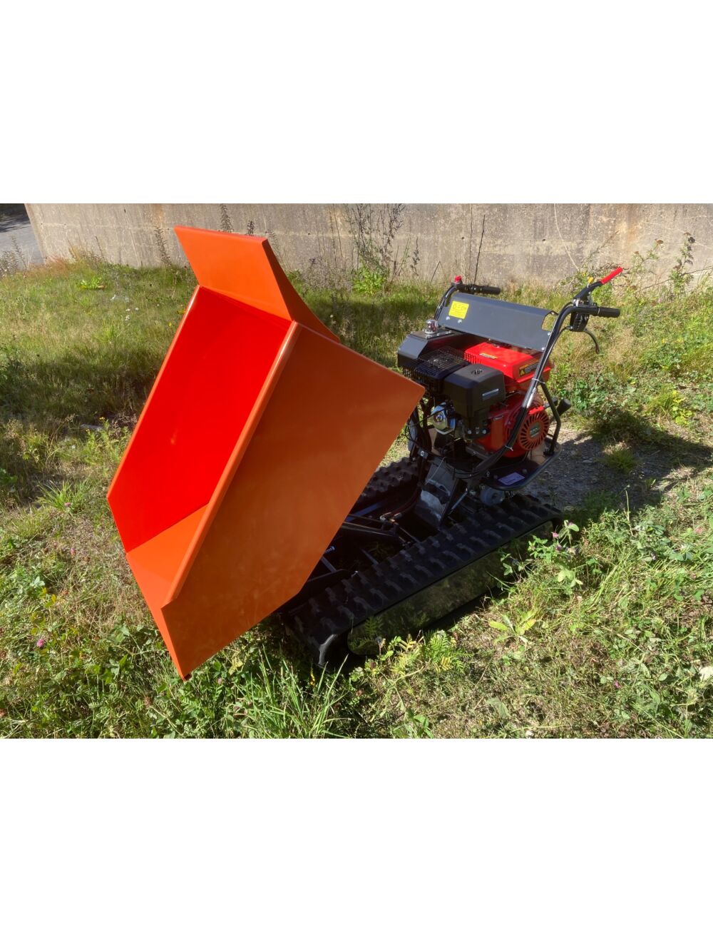 Minidumperen har totalt 4 gir. 3 fremover og 1i revers. Modellen leveres med hydraulisk drevet tipp og kan laste opp til 500kg. Dumperkassen er i galvanisert stål og er pulverlakkert.