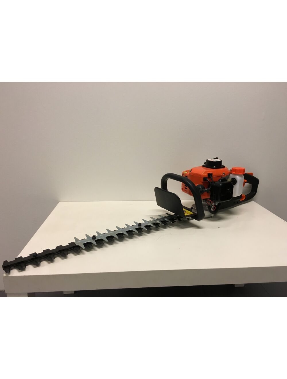 Bensindreven Hekksaks 65 cm sverdlengde • Dreibart håndtak. • Bensindrevet hekksaks med 650 mm sverd. • For klipping av mellomstore og store hekker. • Lettstartet med primer • Komfortabelt og sikkert tohåndsgrep. •Gjennomsiktig bensintank. • Sverdbeskytter, verktøy og praktisk bensinpåfyller medfølger. • Garanti: 2 år Modellen leveres med følgende motorspesifikasjoner: Luftkjølt 2-takt Motoreffekt (maks.): 850 W Sylindervolum: 25 cc Turtall (maks.): 10000 rpm Startmetode: Snorstart Moment (maks.): 1,0 Nm Bensinblanding: 40:1 (2,5 %); 2-taktsolje Bensintank: 0,5 l Bensinforbruk: 537 g/kWh (maks. effekt) Tennplugg: NGK BPMR7A Maks. klippediameter: 28 mm Avstand mellom tenner: 24 mm. Sverdlengde: 22"/650 mm. Lydvolum LWA: 107 dB(A) Mål: 1100*290*230mm mm Vekt: 5,6 kg